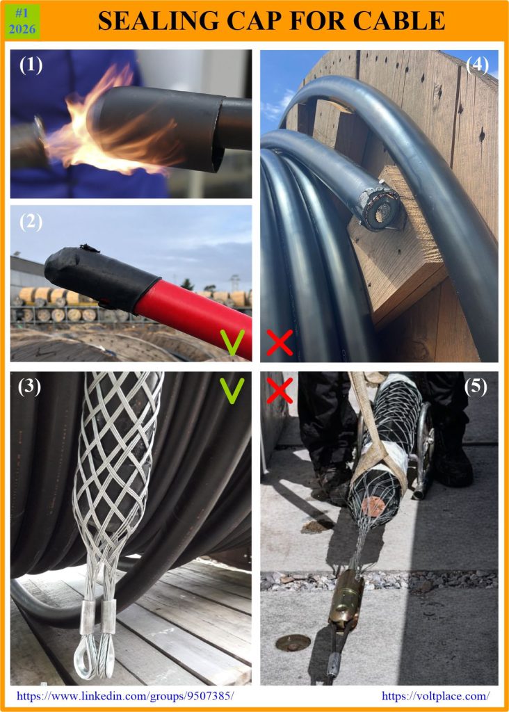 Normally, the sealing caps are heat shrinkable, as shown in photo 1️⃣. In the cable lifecycle, it is allowed to remove the sealing cap only in the following cases: