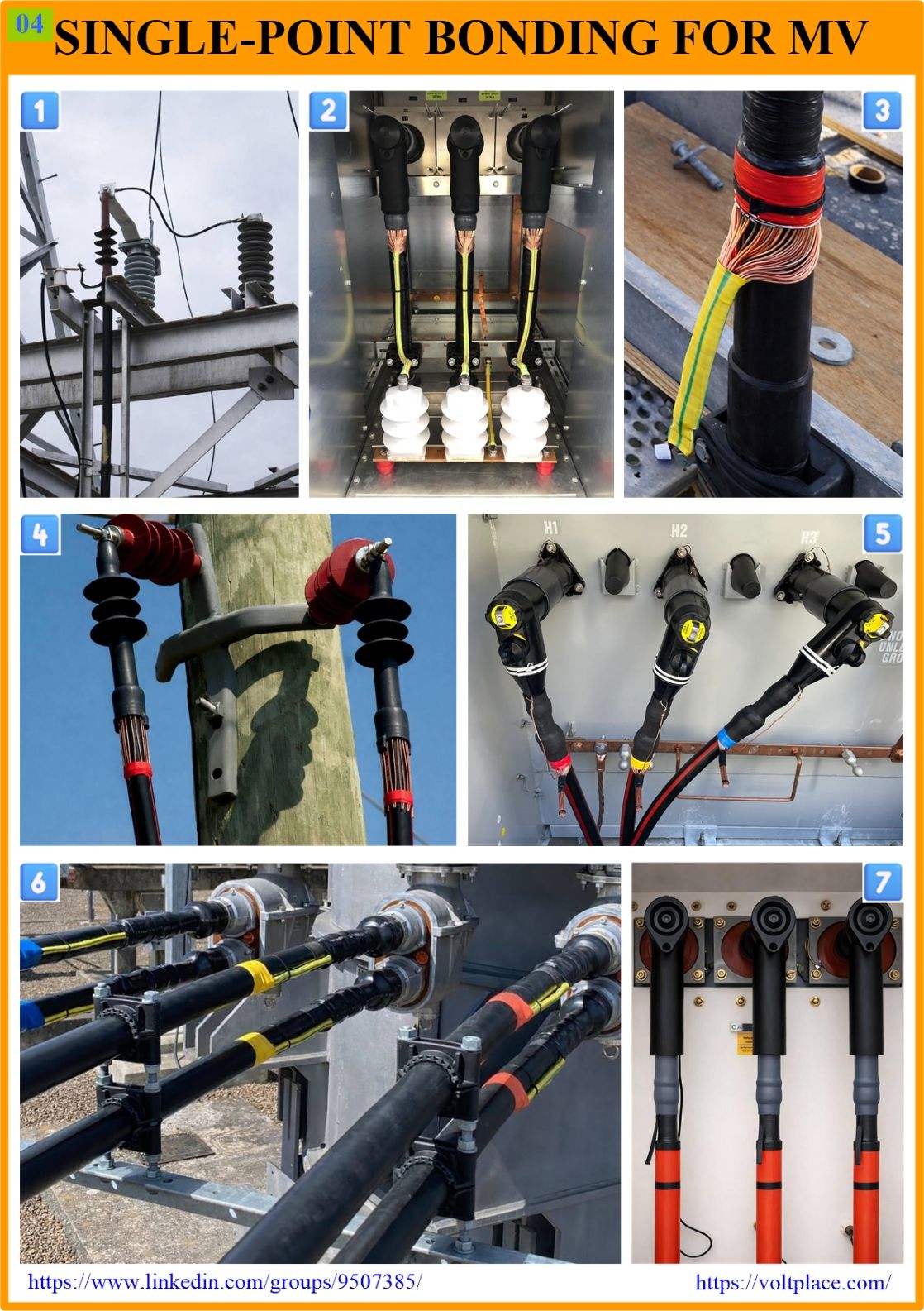 Considering the above, single-point bonding of screens becomes very attractive and profitable for many 6-35 kV lines. The photo shows the options for its implementation in practice.
